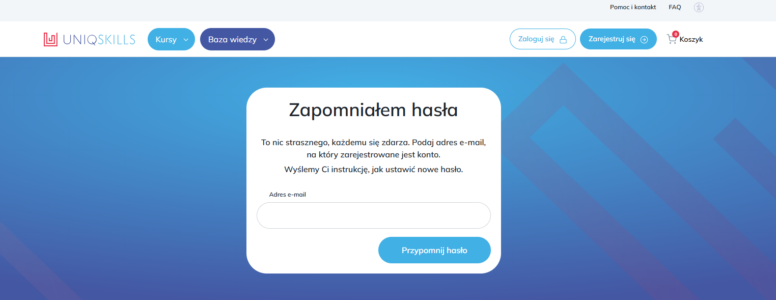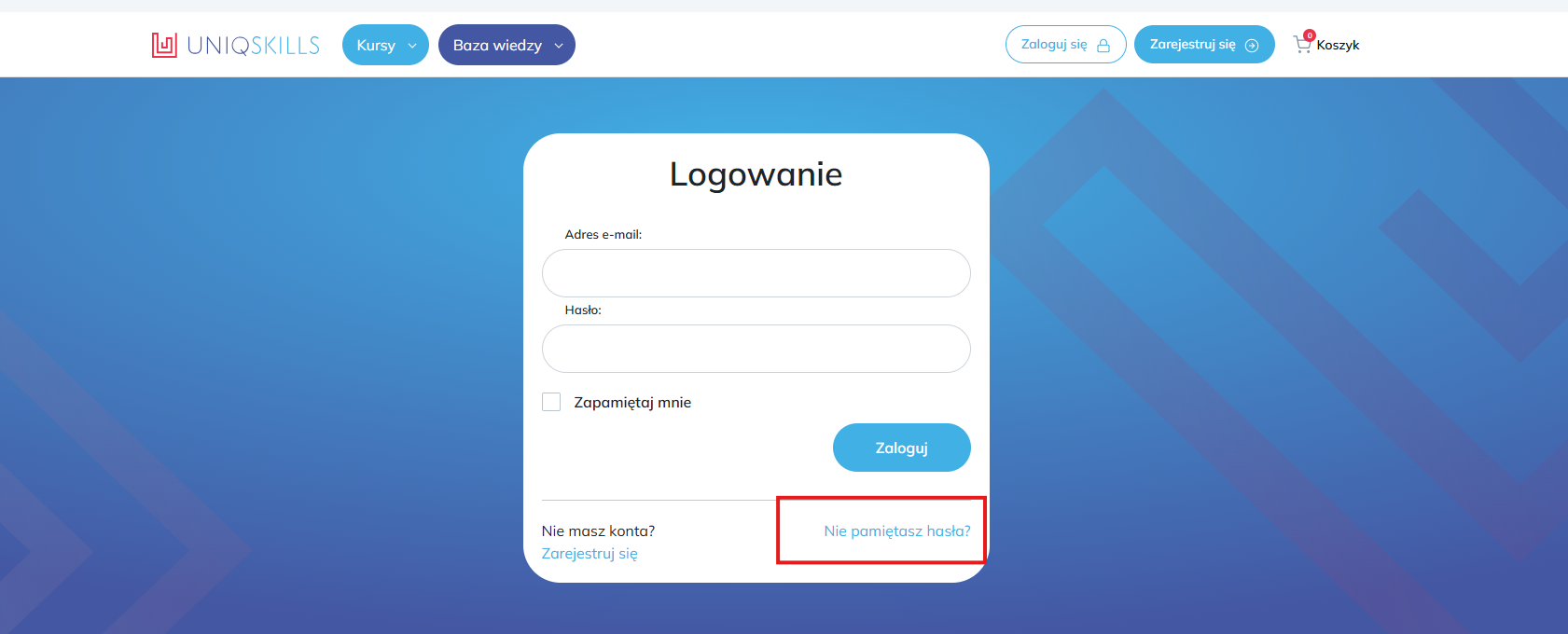 Jeśli nie pamiętasz hasła możesz skorzystać z opcji „zresetuj hasło”. Wejdź na stronę www.uniqskills.com/pl/login
