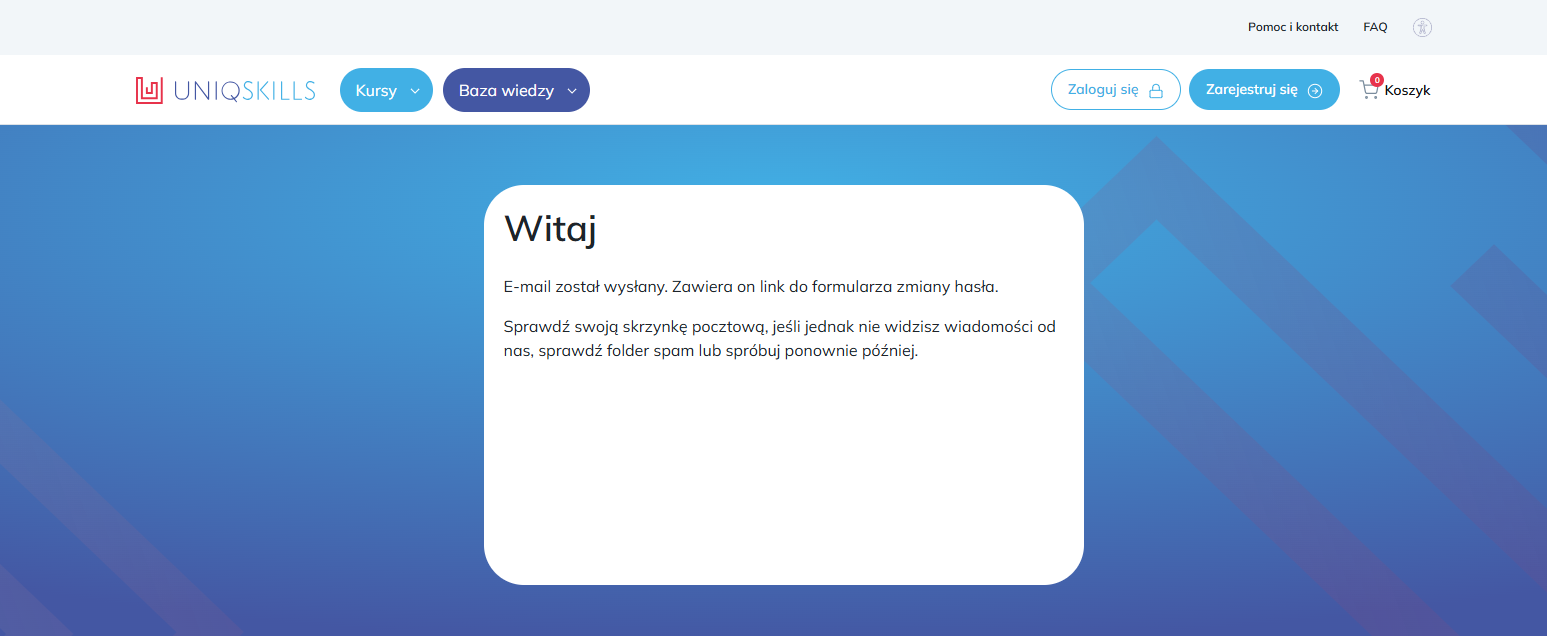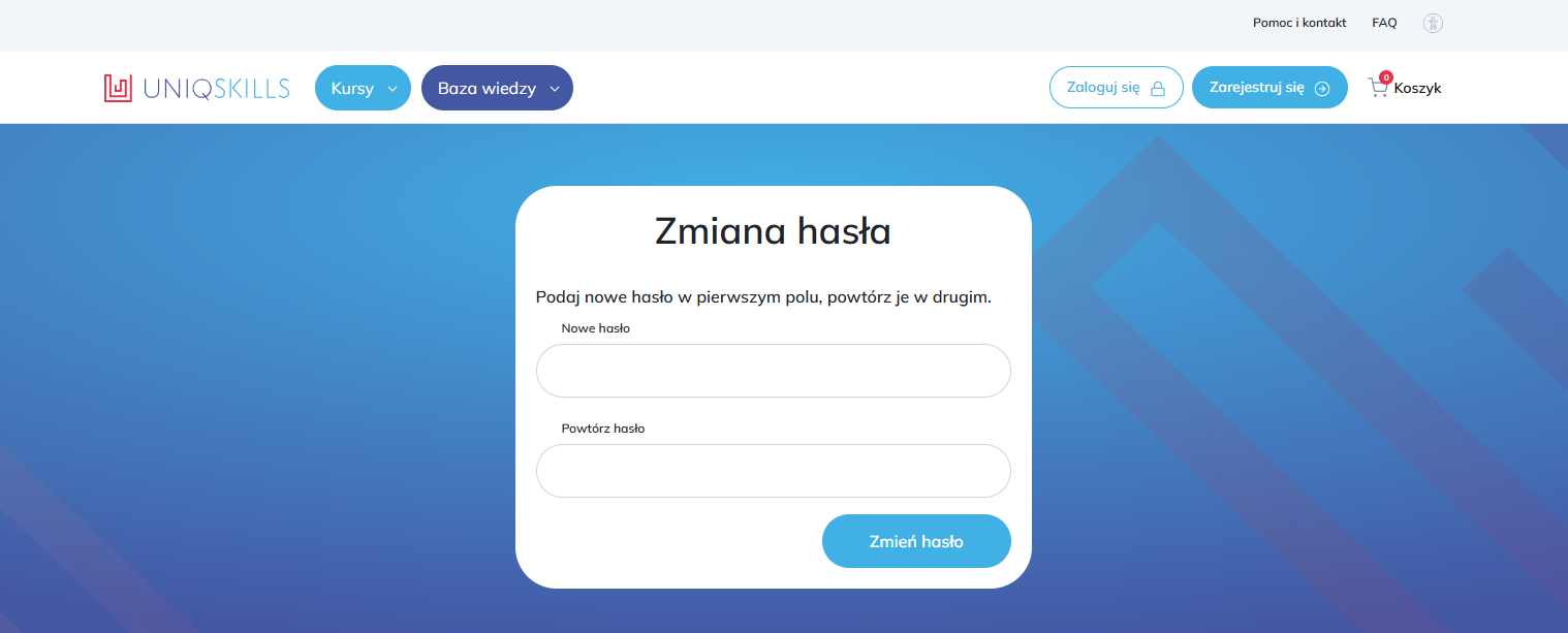 Po kliknięciu w link zostajesz przekierowany do strony www.uniqskills.com gdzie od razu możesz ustawić nowe hasło.